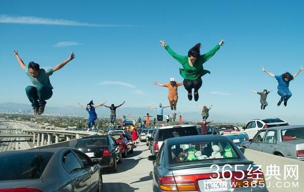 音乐声中,所有人都走出车门加入这一场舞蹈,丰富而夸张的肢体语言带动了整个气氛,融合了跑酷、踢踏等元素的舞蹈充满潮流感。舞蹈结束,一切归于平静,镜头再次转向车水马龙的大场景,动静相宜,节奏得当,无论是场面调度还是镜头运用都可以说是无与伦比。