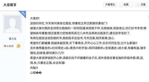 这个往下翻了翻,有个粉丝评论说她母亲去世了,然后富大龙后边儿又安慰来着。