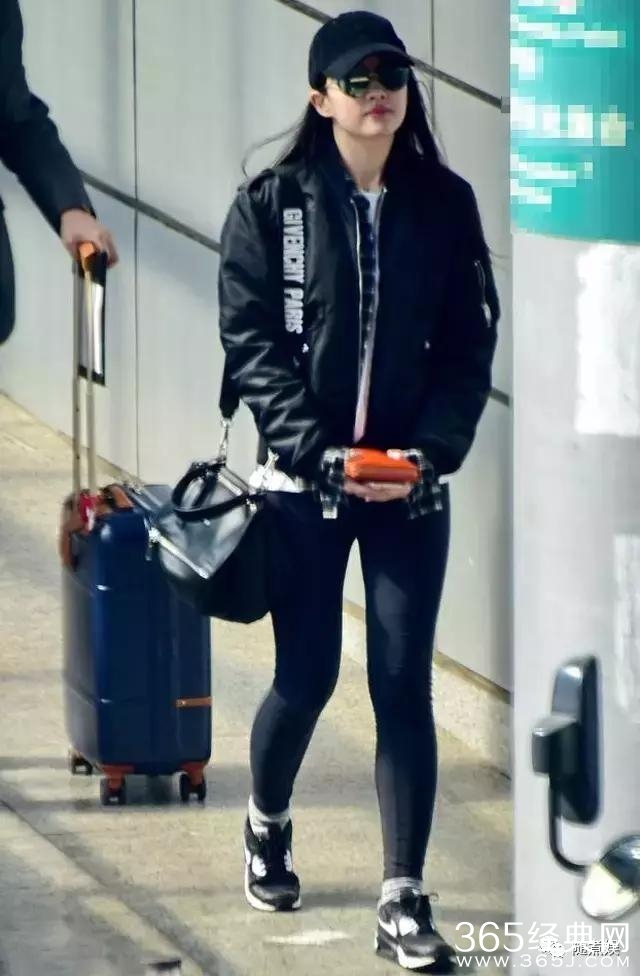 从照片来看,刘亦菲身穿黑色飞行夹克配黑色紧身裤,看起来,的确很美。毕竟,颜值就摆在这,身材就摆在那,时尚感也摆在那。