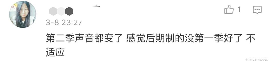 最后说一下,这一季的配音有变化,之前是请人配的,这一季是用的演员的原音,一开始听起来会有点不习惯,所以很多人吐槽啊!