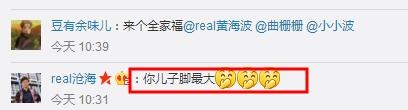 虽然没有明言,但应该是黄海波晒出自己带儿子和其他孩子一起玩耍的照片,可是这位网友更好玩,直接说:你儿子脚最大。