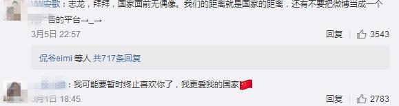看到有一位粉丝说的挺好的,虽然你什么也没做错,但是因为我是中国人,国家为大,粉丝对偶像的爱就先放放吧。