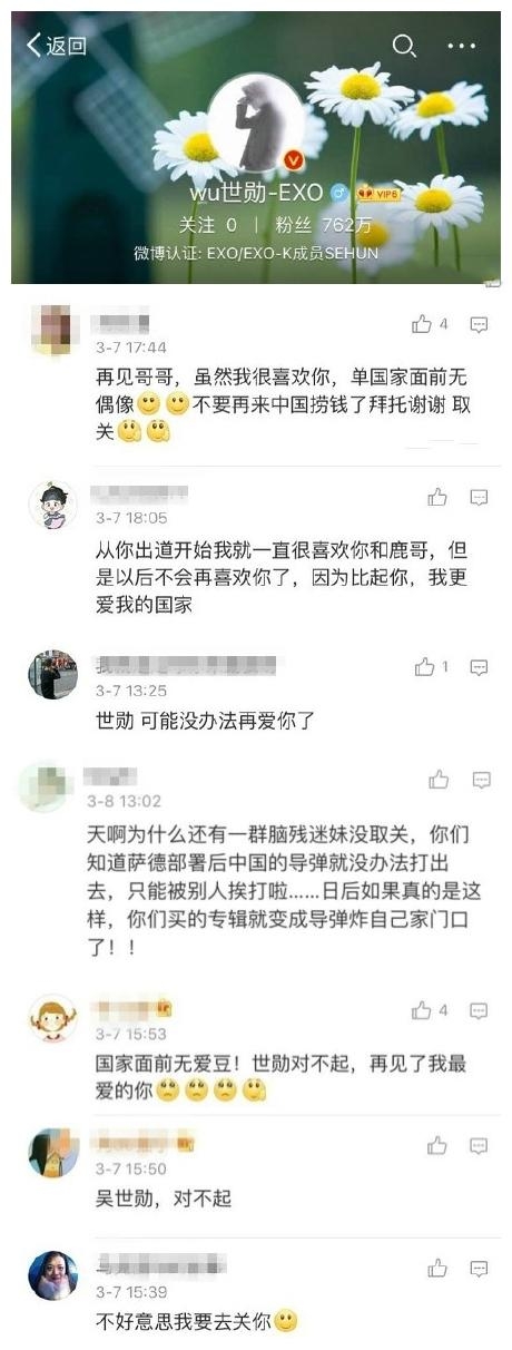 这是EXO成员吴世勋的微博评论,有人说这是最热闹的一个评论区了,出现了不少粉丝的取关评论。