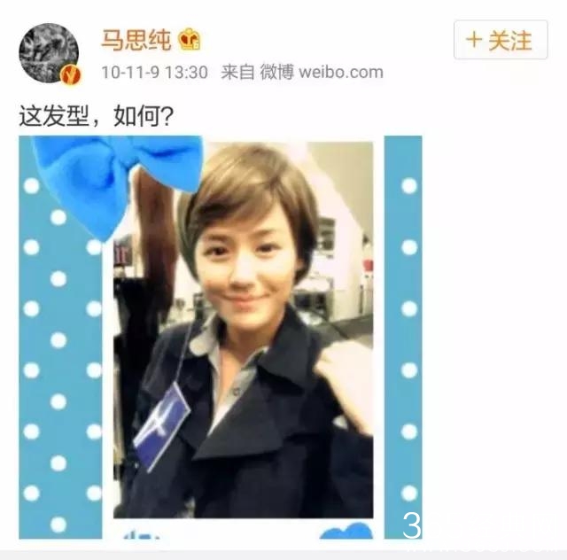 短发的马思纯没有长发的马思纯文艺,却很率性,额,更像海绵宝宝。