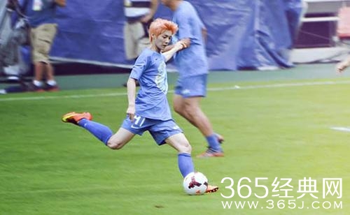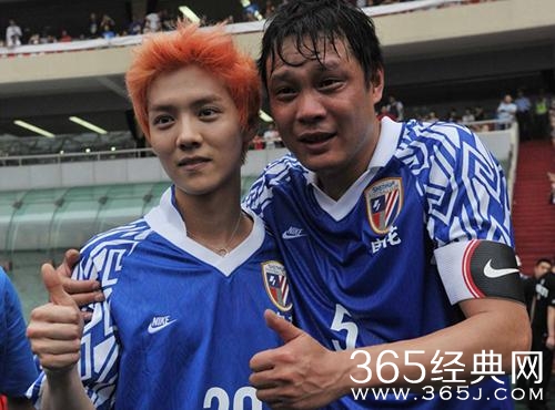 穿曼联球衣的少年鹿晗