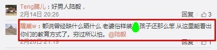 也有网友称自己可能有点仇富,看见明星工资那么高,有些人一辈子都挣不到这辆车的钱。也有网友称,缺什么晒什么,陆毅是穷过所以怕。该网友还表示,陆毅老婆俗,孩子还那么笨。另外,因为陆毅晒出的图中,大女儿朝奶奶洒水(详情可以查看上面第六张图),也被网友批评从这里能看出教育方式了。