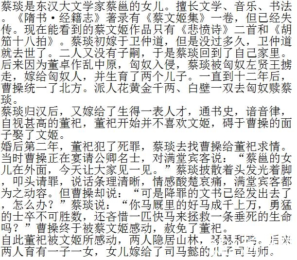 蔡文姬居然是三婚。