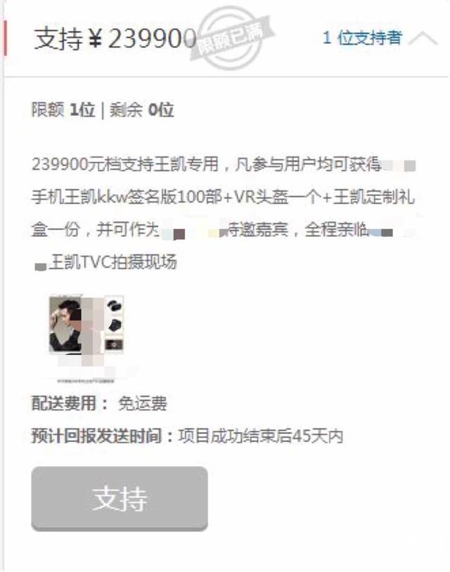 看到王凯的人气这么高,去年某品牌手机就顺势推出了王凯签名定制版,并组织了众筹活动,结果凯凯王的一位神秘粉丝豪掷24万只为了和偶像近距离接触,这么大手笔把妹妹的瓜子都吓掉了!不知道这位粉丝的身边缺不缺助理小妹?