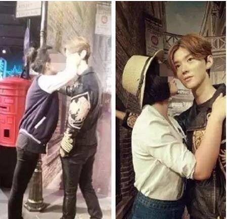 还有鹿晗的蜡像被亲掉色……好吧也许妹妹看到自己爱豆的蜡像也会把持不住哈哈,不过还是要注意卫生啊,蜡像的色都被亲掉了,想必亲过它的人肯定已经数不清了……
