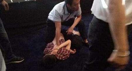 一位人突然冲上舞台把刘亦菲扑倒了!在场的人都被吓得不轻!