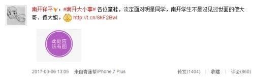 据说学校的校长也出来调侃说希望各位同学面对明星同学要淡定,还说学校的学生并不是没有见过世面的傻大哥傻大姐,这样的调侃方式还是挺拉好感的,还是希望下一次同学们可以淡定一些哦~