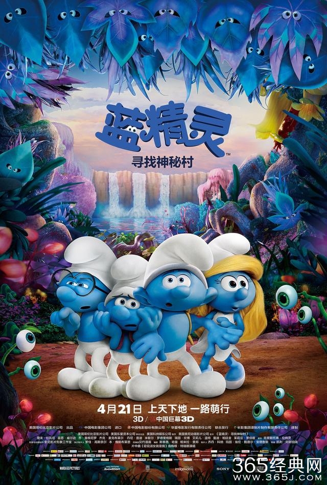 电影《蓝精灵:寻找神秘村》由美国哥伦比亚影片公司、索尼动画联合出品,中国电影集团公司引进,中国电影股份有限公司及华夏电影发行有限责任公司联合发行,曾执导《怪物史莱克2》的凯利·阿斯伯瑞导演,斯泰茜·哈曼、帕米拉·里邦编剧,并由曾获奥斯卡最佳女主角的好莱坞顶级巨星茱莉亚·罗伯兹加盟献声全新角色蓝柳柳,黛米·拉瓦塔、曼迪·帕廷金、雷恩·威尔逊等配音,将于4月21日内地公映。