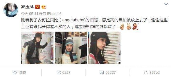 前段时间,就连凤姐也拿baby的旧照来开玩笑了:“谢谢这世上还有跟我长得差不多的人~”
