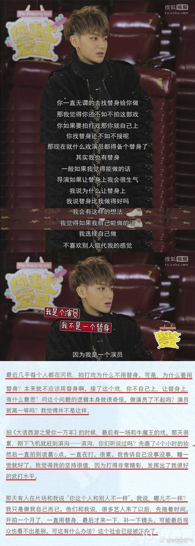 编剧宋方金称"卧底横店"98%鲜肉不敬业!更表示此种影视行业乱像是从近几年才开始的,不知道这次能不能给小花小鲜肉们敲个警钟。但看了眼宋编剧的微博,表扬了黄子韬说他说的很好,韬韬说演员让替身上这个问题逻辑很奇怪,演员就高人一等啊?既然得到高回报就不能让他们失望。你们觉得呢?
