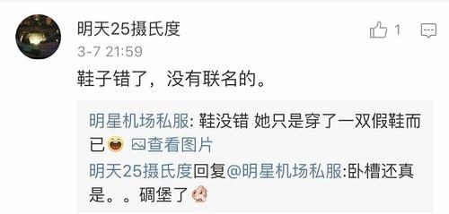 结果立刻被博主爆料说并没有这个合作款。。证实了唐艺昕这双鞋是假的!