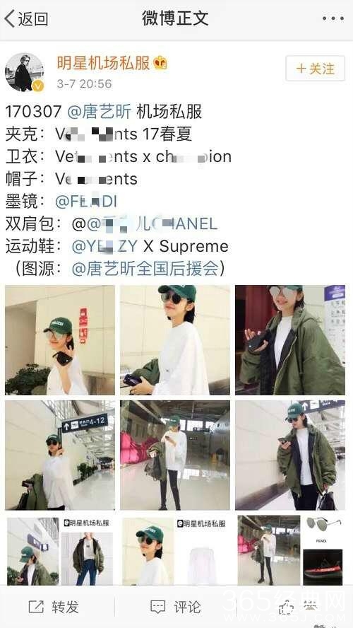 某知名博主po出了几张唐艺昕的机场街拍图。。身上单品都是某知名品牌的17年春夏新款。。