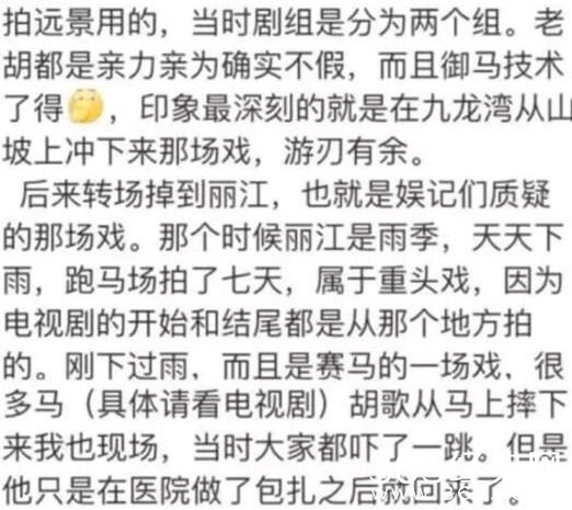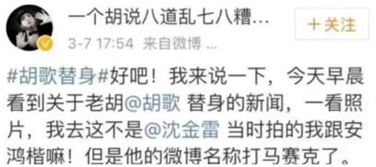 对于沈金雷此前发文称胡歌《香格里拉》用替身,胡替被认错。