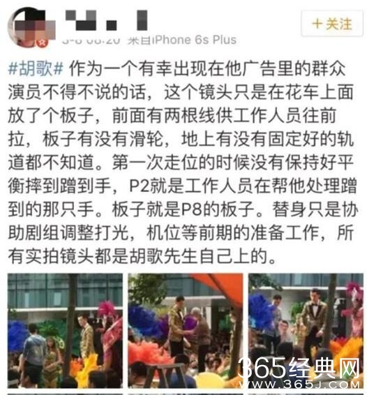 网友证明胡歌广告都是亲自上阵