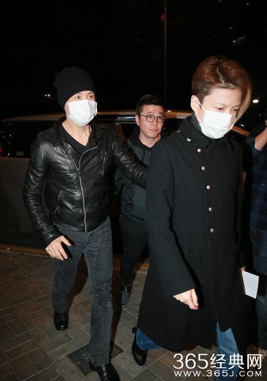 这是前阵子,夫妻俩出席好友葬礼。罗美薇表情凝重看起来很悲伤,张学友跟在罗美薇身后,当起了护妻狂魔。