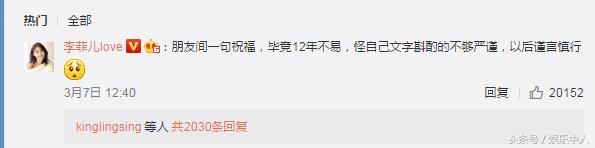 面对恋爱传闻,李菲儿随后在微博评论澄清:是自己的文字斟酌的不够严谨。