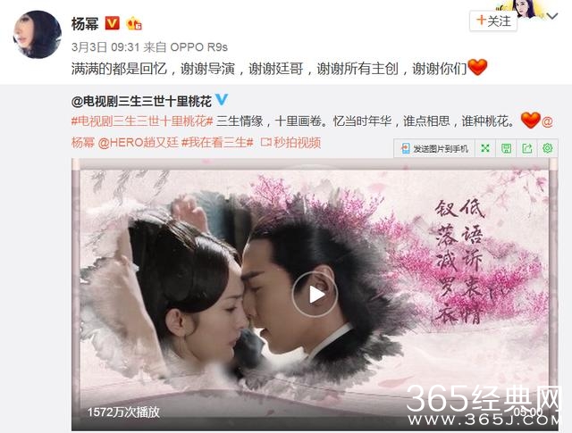 3.杨幂用的是oppo r9,作为oppo r9的代言人,喊红了“充电五分钟,通话两小时”这句广告语,今年oppo和杨幂可谓双赢。杨幂每个动态都是OPPO R9,就差在三生三世里面用了。