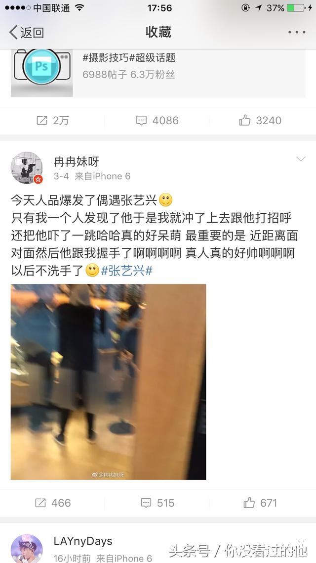 170304,一名网友偶遇张艺兴,情绪激动不已,号称只有他认出了艺兴本人,还打招呼握了手哦!~