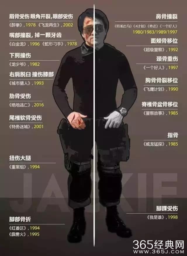 入行50年的成龙大哥,拍了两百多部片子,受的伤摔断的骨头自己都数不清