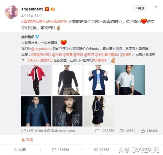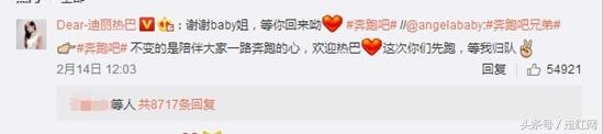 在2月14日大家都在秀恩爱的时候,Angelababy却在微博上面表示:不变的是陪伴大家一路奔跑的心,欢迎热巴,这次你们先跑,等我归队。