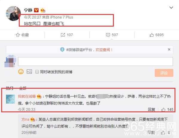 一时之间,对于宁静在怼谁,引发网友猜测,在宁静这条微博下面,热评第一的是有关郑爽的,不少网友认为,静姐这是对“郑爽骂人”上热搜发表自己的一番感慨和见解呢。