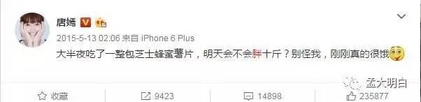 其他的女星可能没有给自己起胖子外号的癖好,怕一语成谶,但也时不时娇嗔般地晒胖。