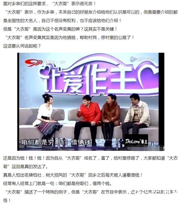 除了修路,大衣哥也多次借钱帮衬一些亲朋好友和同村的村民,但是那些人觉得大衣哥挣得钱多,理直气壮的说不还。