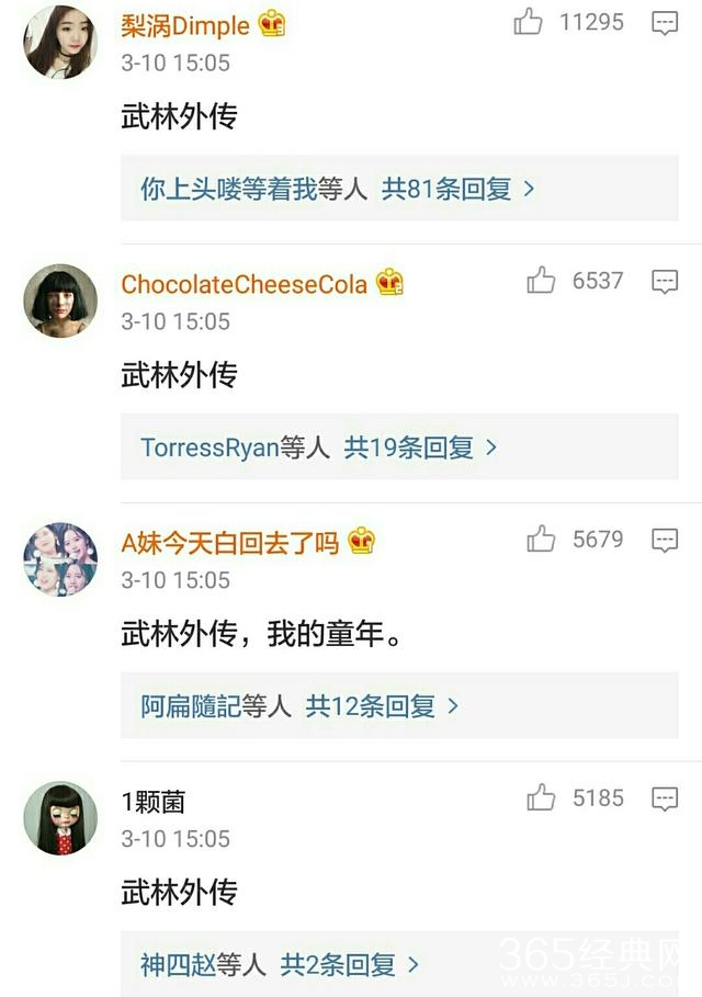 网友纷纷评论道:《仙剑奇侠传》、《恶作剧之吻》、《风云雄霸天下》、《爱情公寓》……