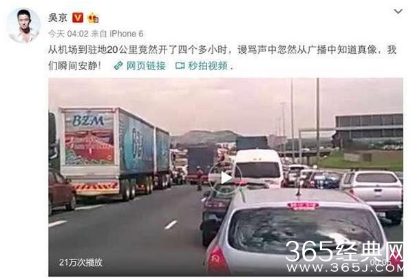 随后又差点再次被抢。吴京微博发文称:“从机场到驻地20公里竟然开了四个多小时,谩骂声中忽然从广播中知道真相,我们瞬间安静!”。