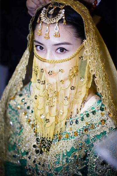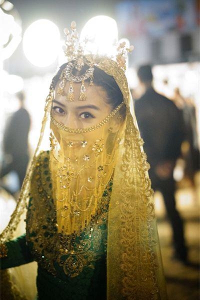 在泛黄的灯光舞动,面纱下的神秘笑容,让baby看起来更美了!