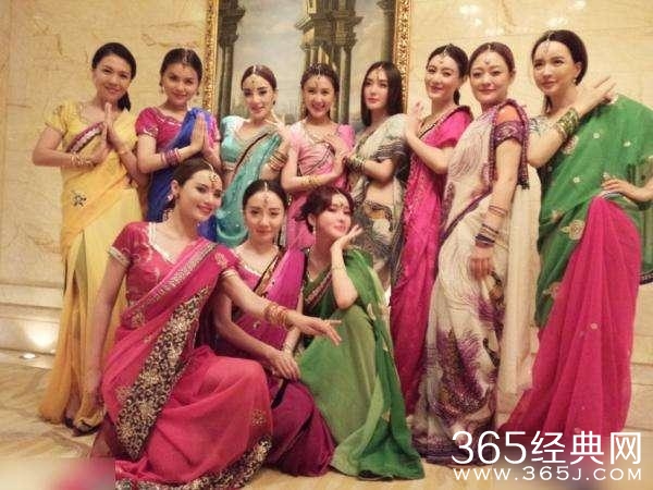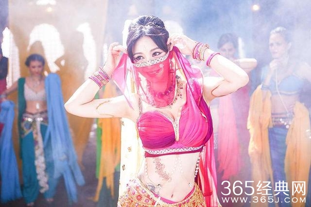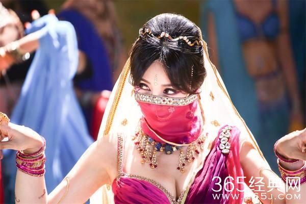 遮着面纱扭着细腰,在印度女郎的人群堆里,柳岩显得更加美艳了。