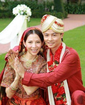 早年蔡少芬和罗晋为王祖蓝拍摄《蓝儿本色》时,夫妻俩选择穿上印度新人礼服,在现场旁若无人的秀起恩爱,身穿印度新娘礼服的蔡少芬显得尤为娇艳。