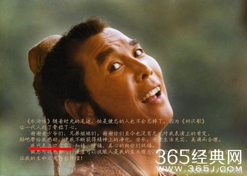 还有,他唱的那首“爷爷生在天地间,不求富贵不做官,梁山泊里过一世,好吃好喝赛神仙!”的歌谣,也同样让人热血沸腾。