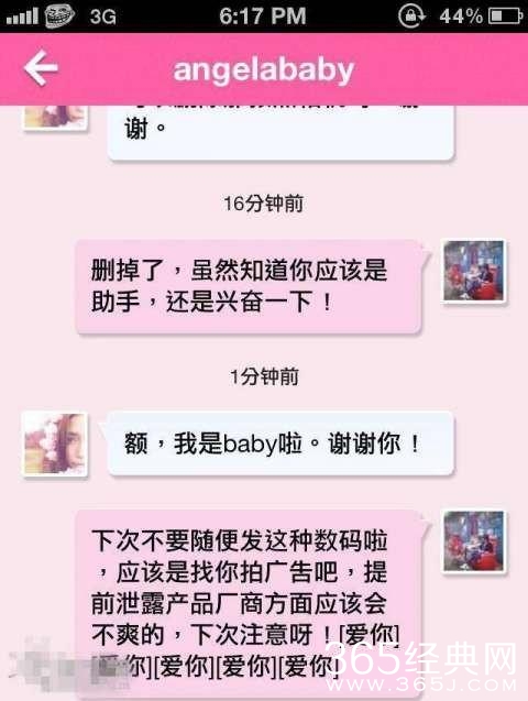 baby前不久在微博发了一张照片,刷刷微博,baby没有想到区区一张照片损失让她1000万 ,因提前曝光松下的新产品秘密,一千万是baby录一期的报酬啊,这么辛苦赚来的钱就这样因一张照片报废。