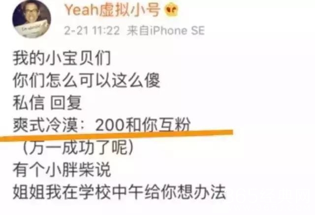 哎呀妈呀,粉丝花钱支持你,到头来还是花钱互粉!真的有点心塞啊!别不相信,这件事,后来郑爽还出来说了一次:我收200块,很难相信么?