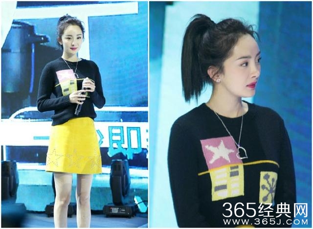 马上,劳模杨幂又出席某代言活动,穿得是毛衣和裙子都是来自miumiu,也是杨幂最为擅长的露腿style,发型继续延续了在机场的马尾。