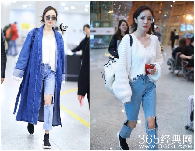最近的机场街拍里,她一身牛仔元素,内搭wildfox白毛衣,脚上穿了Balenciaga的袜子鞋(唐嫣以前也穿过很多次),包包还是Chanel的当季款式。