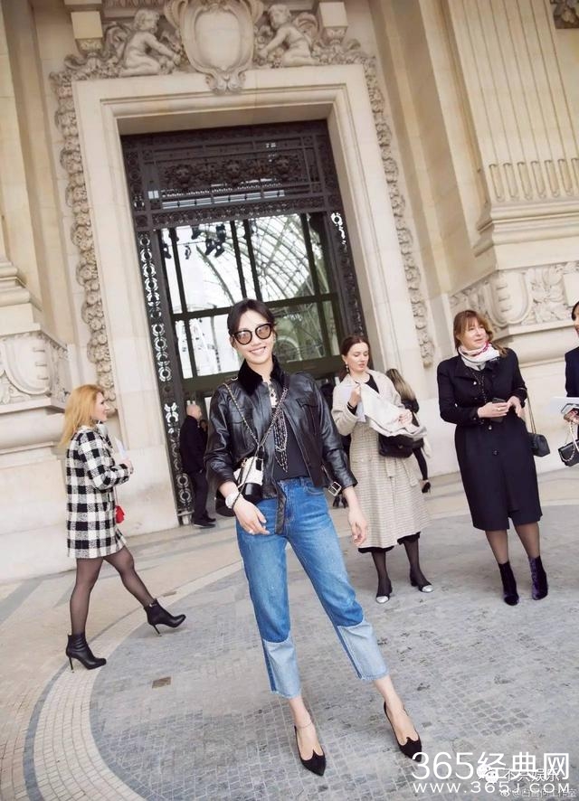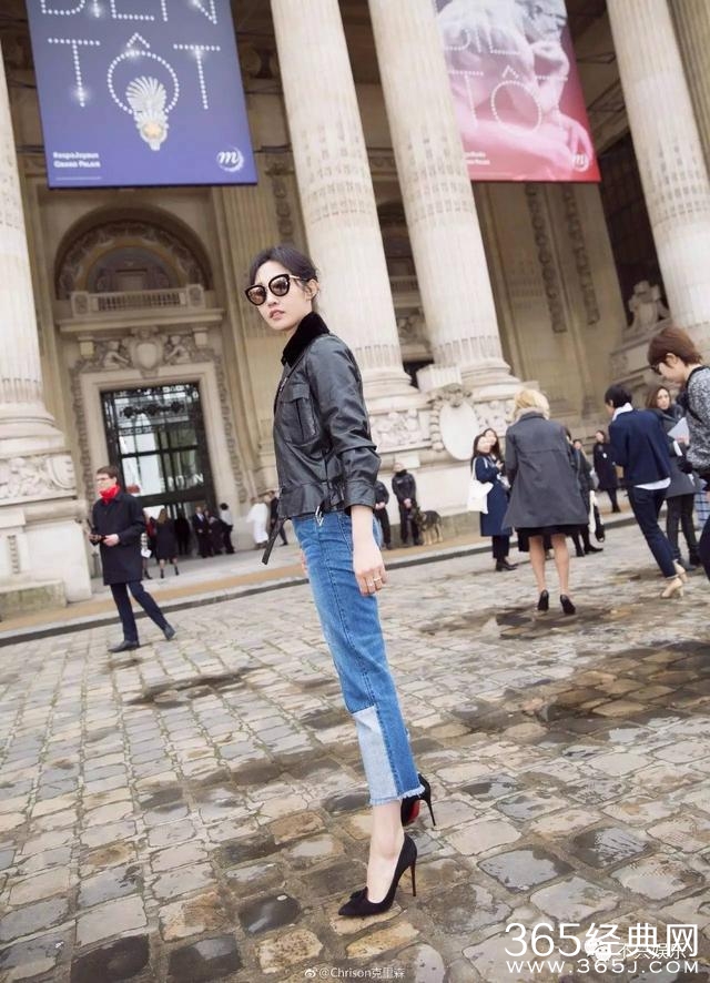 一身皮衣搭配高腰牛仔裤,很是帅气,这一双大长腿被拉的快有两米长了。