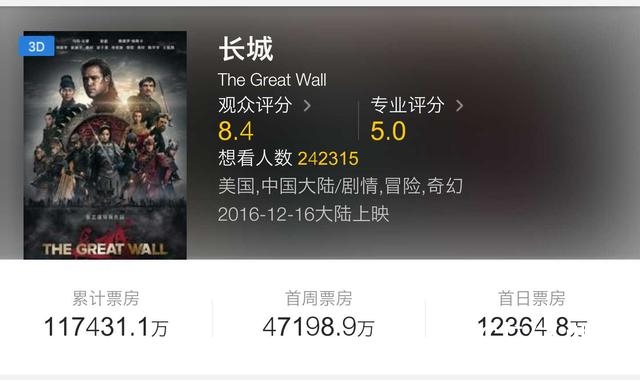 《归来》赚了口碑,《长城》赚了票房,看来交了一份还不错的成绩单。