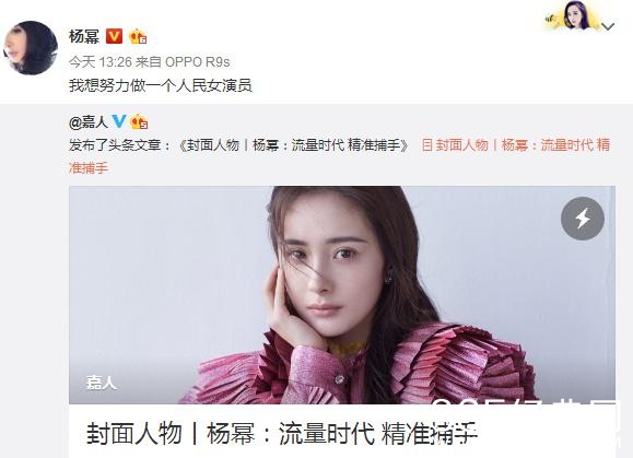 最近,杨幂在接受某次采访时表示,“我的目标是成为一个好的人民艺术女演员。”杨幂还称“我不是弱的处女座。我不在意别人说什么,可能我骨子里某一方面有一点迷之自信,我并不在意别人给我的评价或抨击,我足够了解我自己,如果我觉得有些人说的东西不准确,我不会特意去解释,懒得辩解。”