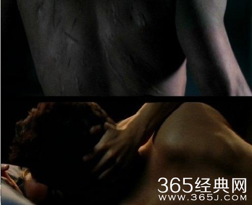 在电影的开始,超胆侠赤裸上身的镜头清晰地显示了一个充满疤痕的背面。后来和艾丽卡亲密的时候,他的伤痕都消失了