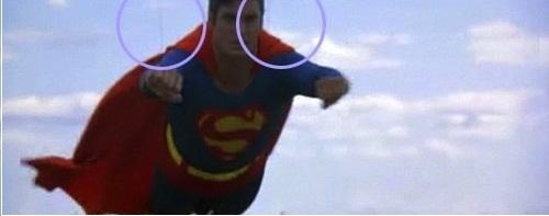在超人(克里斯托弗·里夫) 吊他的线可见。