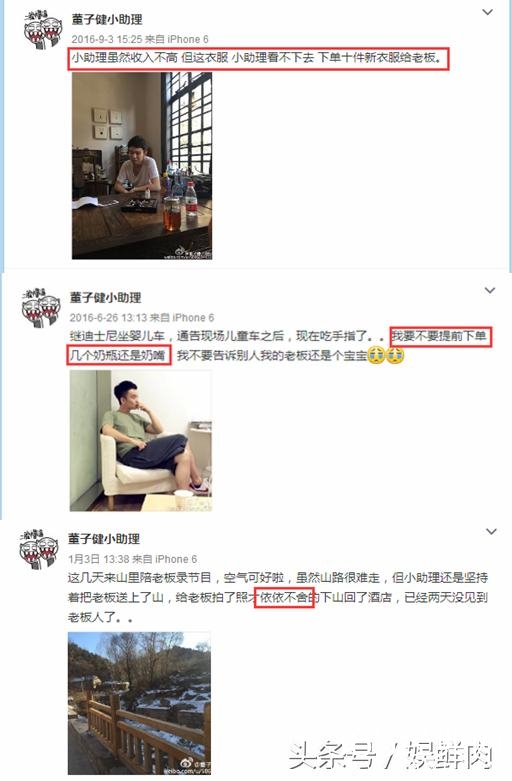 小助理是怎么做到可以偷拍这么多照片,难道不怕被老板发现吗?好吧,这个微博号是从2016年2月23日注册,取名为董子健的小助理。第一条就开始黑自己老板了,很多人说他取关自己老板,但是其实小编认为也许他一点都不想关注自己的老板,这个微博也许就是自己的小窗口可以吐槽自己的小老板,偷偷趁着老板不注意拍着各种丑黑照,记录老板的点点滴滴的故事,如果不是网友发现的这个,也许董子健还不知道自己已经默默被自己的小助理黑了一年了。发微博黑,还总是配上各种表情包,如果你发现自己身边人竟然藏着自己无数表情包,你会怎么对他?