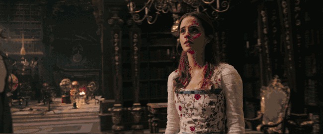 动画版野兽动作夸张,表情丰富;而真人版野兽,则显得木讷了一点(亏得大表哥天生一副深情的眼神)。所以贝儿和野兽之间的火花时断时续,好在搭配了熟悉的旋律,拯救了这方面的短板。