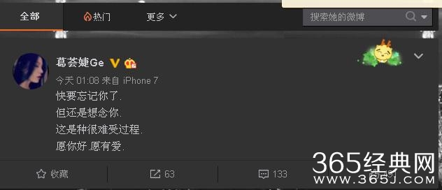 而2月12日凌晨葛荟婕再发微博称:“快要忘记你了,但还是想念你,这是种很难受的过程,愿你好,愿有爱。”