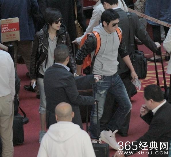 机场秀恩爱,几乎都跟街拍一样,时尚又恩爱。